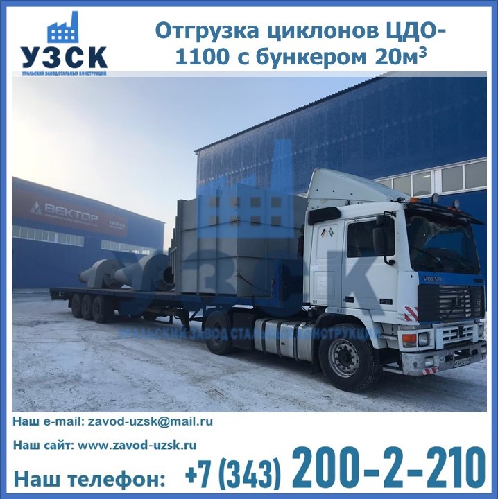 Циклоны ЦДО-1100 с бункером изготовлены и отправлены для предприятия АТТ в г. Новосибирске.