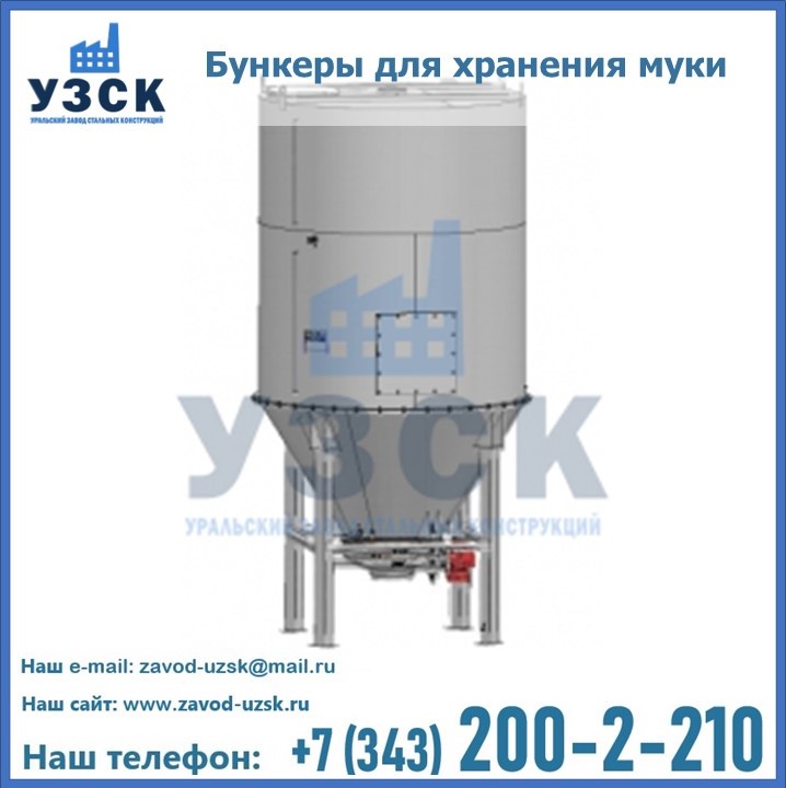 Завод «УЗСК» в Старом Осколе проектирует, производит и поставляет целевое оборудование, в том числе, бункеры для хранения муки и прочих сыпучих материалов.