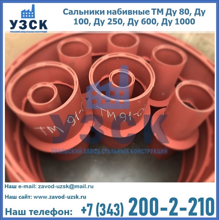 На производственных площадях Уральского Завода Стальных Конструкций в Старом Осколе профессиональные сотрудники занимаются проектированием и разработкой различных закладных деталей, в частности осуществляется производство и реализация набивных и нажимных сальников. Все изделия, которые можно приобрести у нас, отвечают установленным требованиям по ГОСТу, а также прочей нормативной документации.